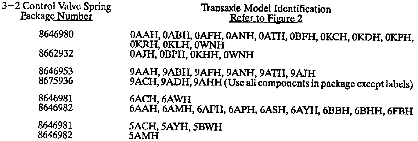 Service Replacement Transaxle Assemblies (SRTA) are built with "low altitude" calibrations and need to be updated with a service 3-2 control valve spring for use in areas designated as "high altitude". Refer to Figure 1 for a geographical listing of high altitude areas. If this service kit is not installed, a harsh 3-2 shift will occur at high altitudes.