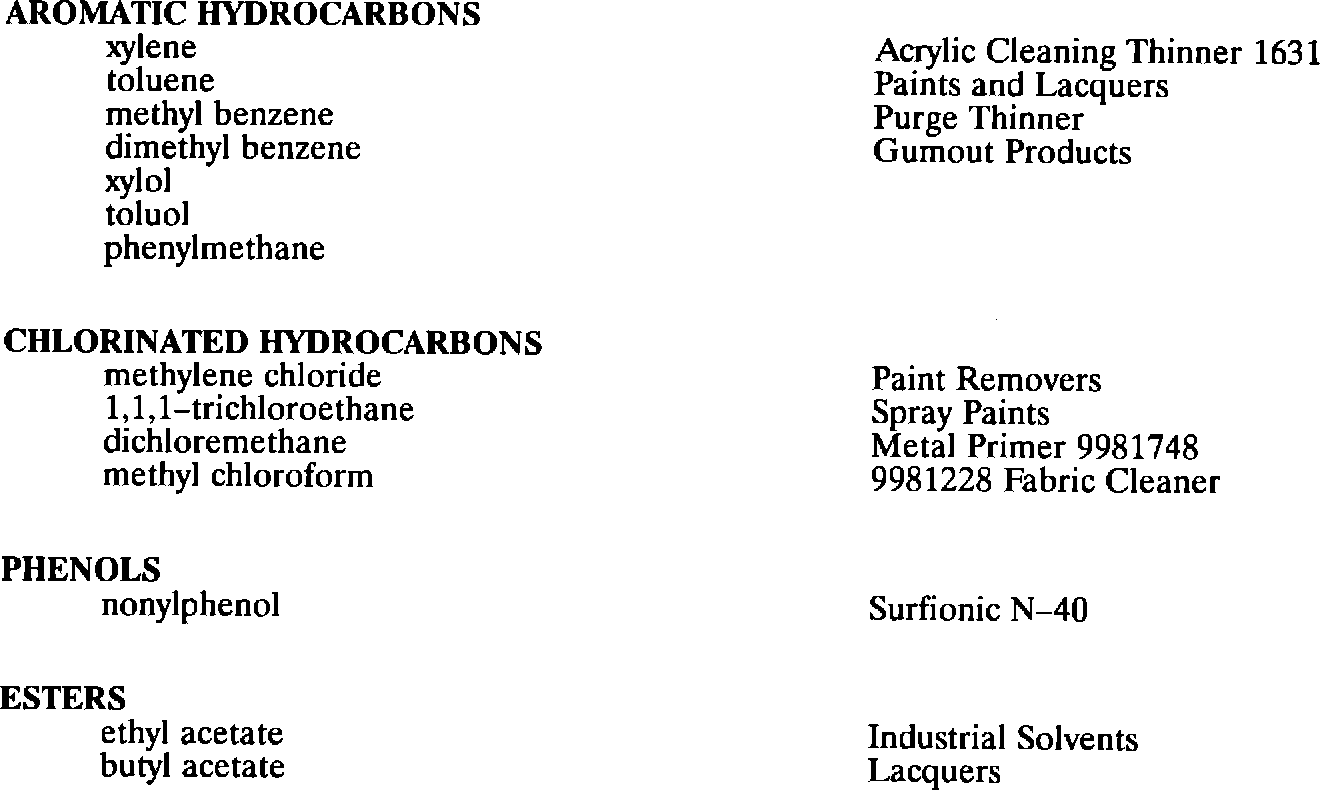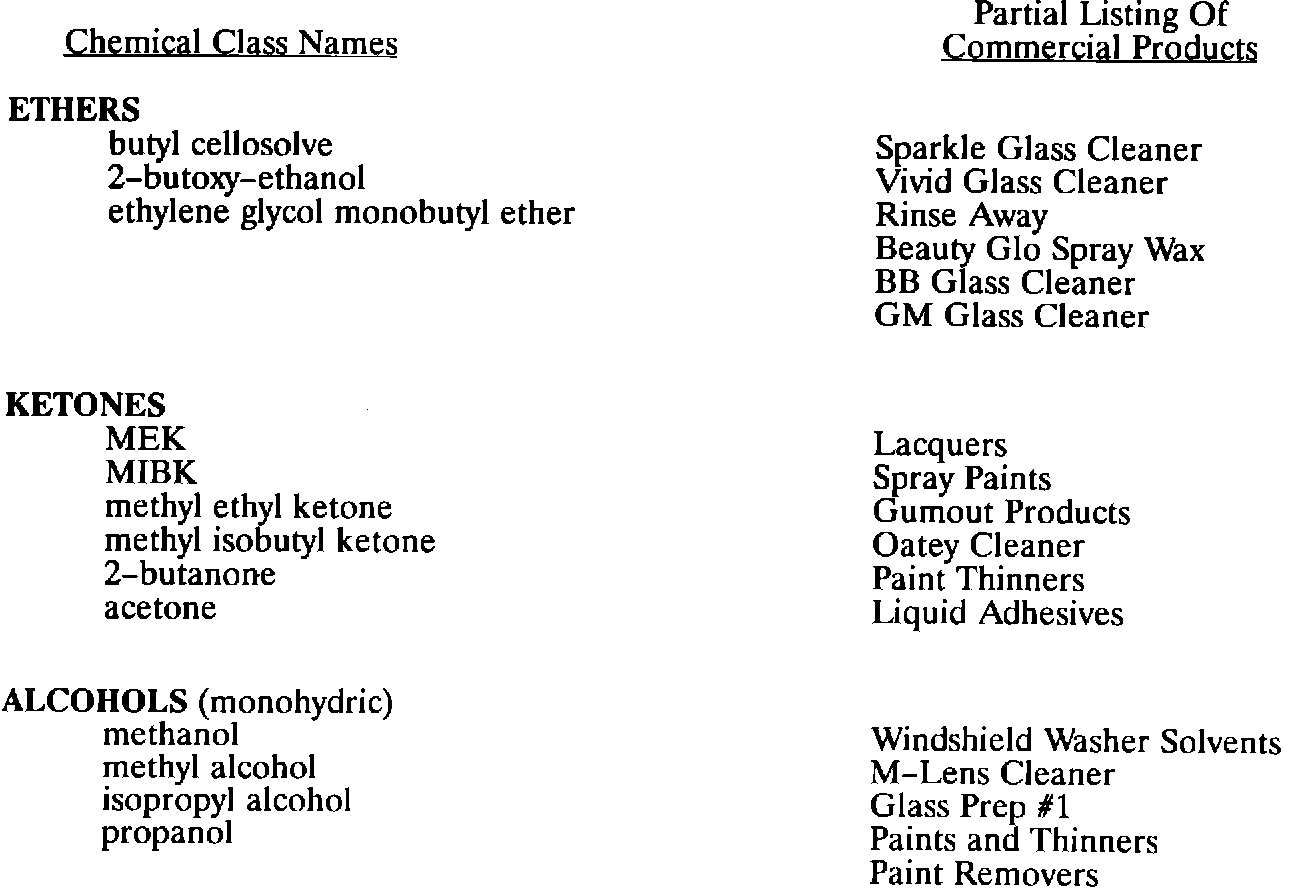 Listed are the chemicals that may produce stress cracks and some of the cleaning products that contain the chemicals.