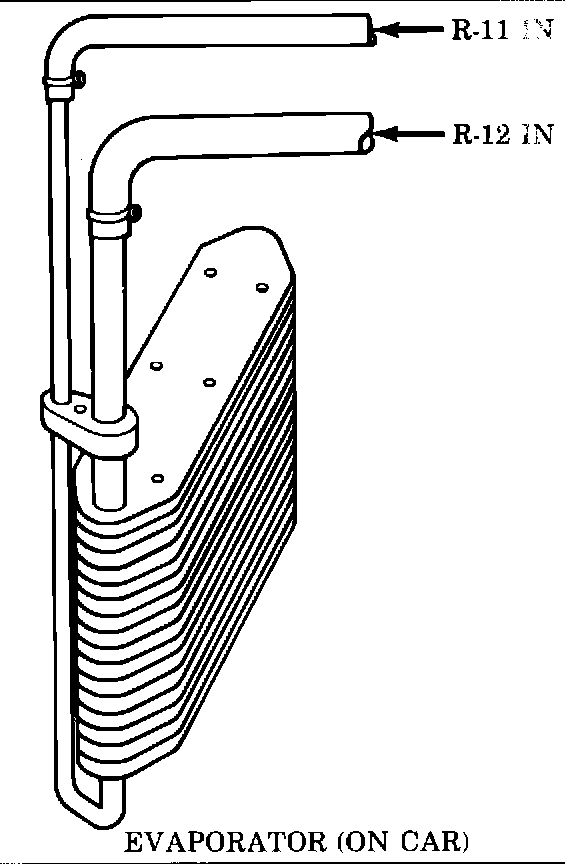 It is mandatory that thge R-12 vapor is blown into the evaporator large opening (outlet/suction side) extension tube or else all of the R-11 will not be purged. Failure to purge all the R-11 out of the refrigerant system may result in compressor damage and poor performance.