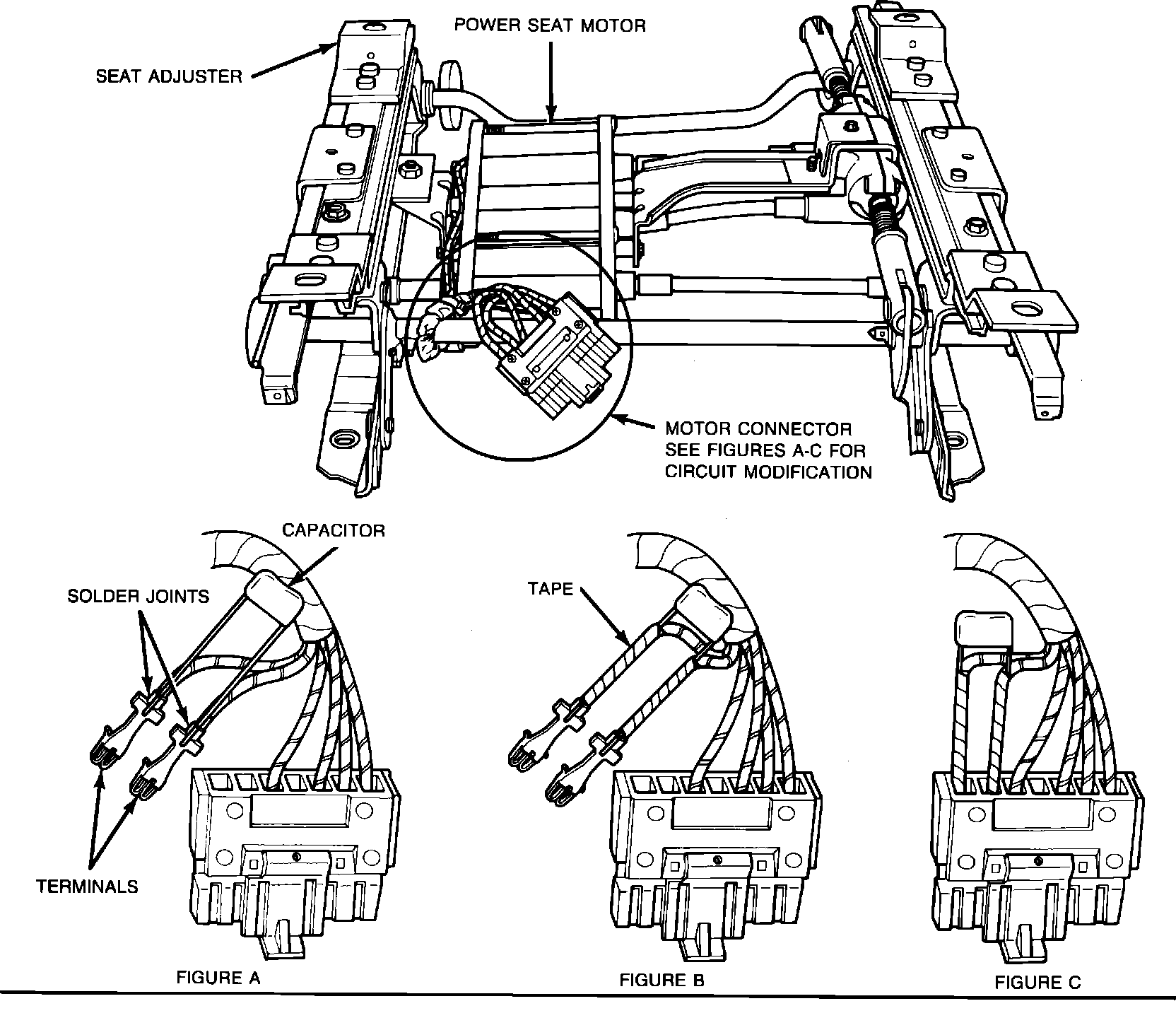 6. Solder capacitor P/N 1644291 to the back of the terminals as shown in Figure 1-A. Position capacitor leads on top of terminal so that the capacitor is as far from the terminal leads as possible.