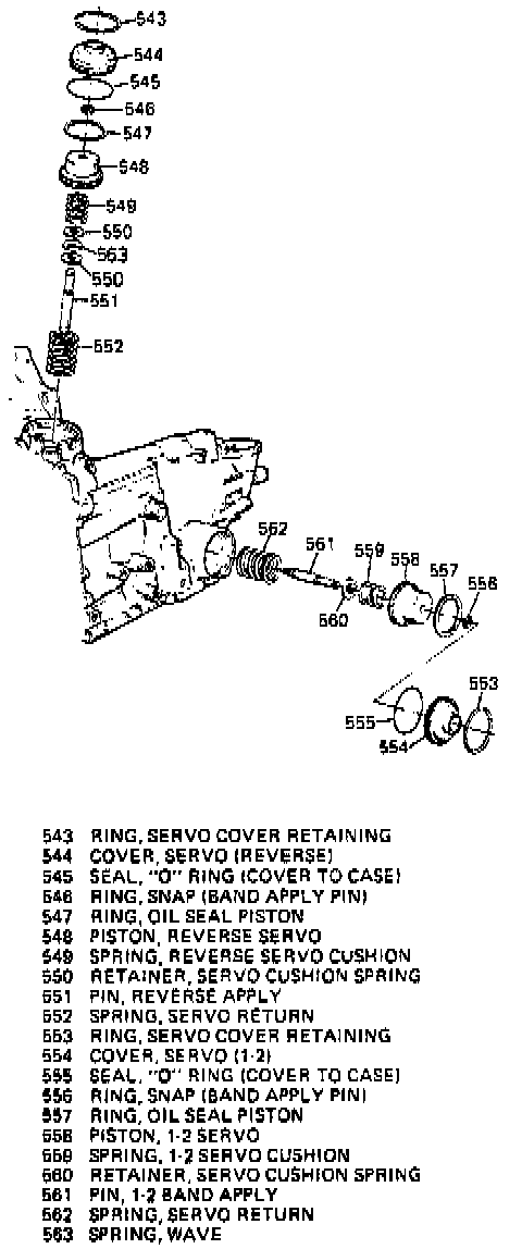 Fig. 8, 1-2 and reverse servo assembly: