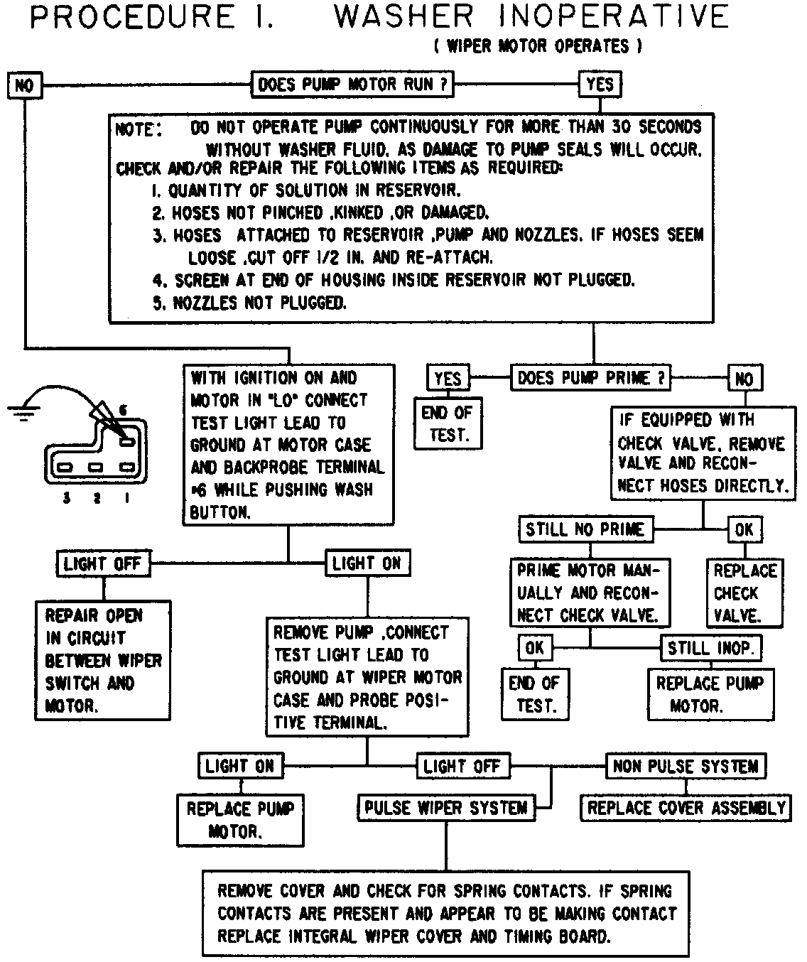 Chart 1 Washer Pump Inoperative (Wiper Motor Operates)