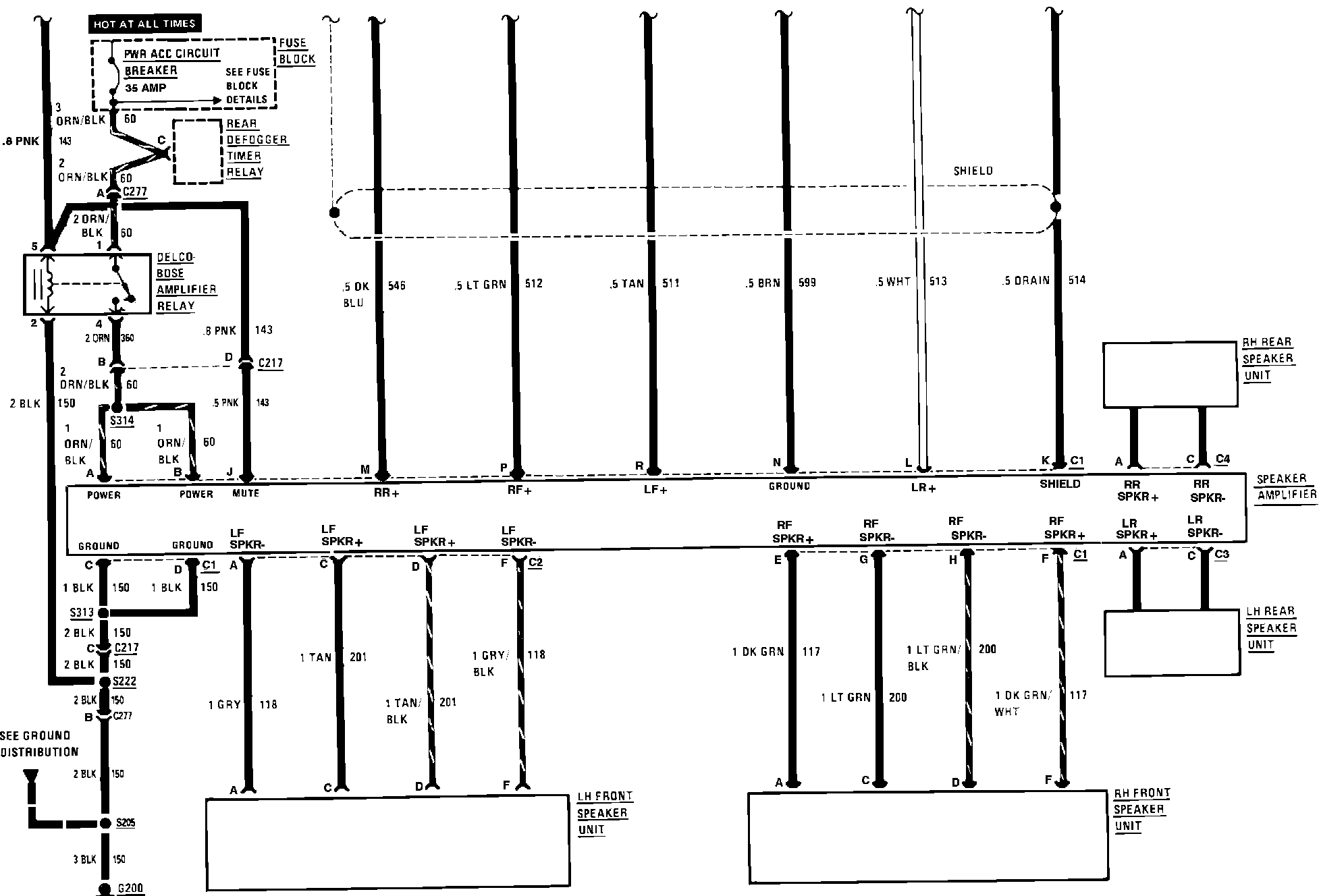 Radio Wiring Circuit (W/Delco Bose Music System):