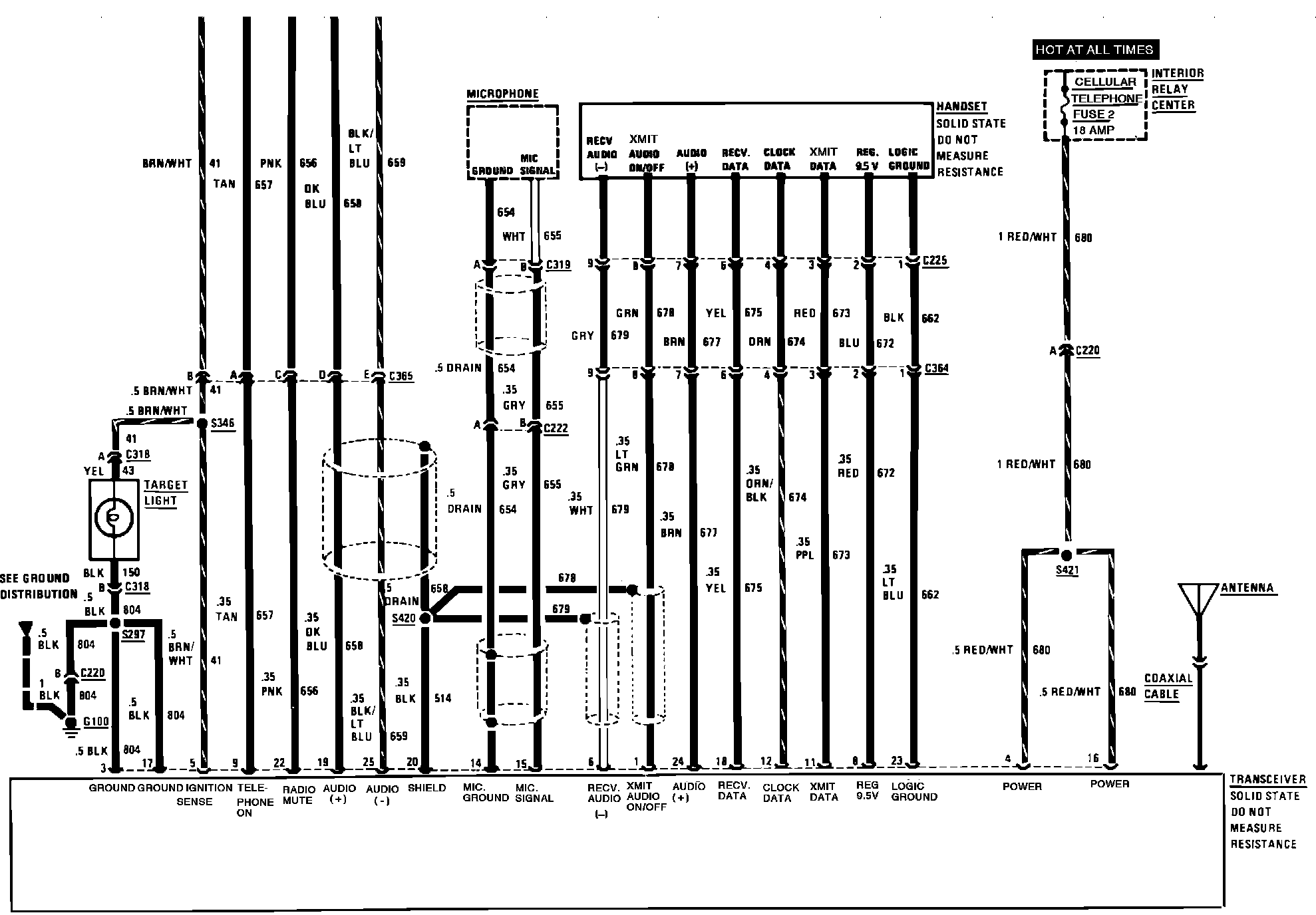 Cellular Mobile Telephone Wiring Circuit (Less Delco-Bose Music System):