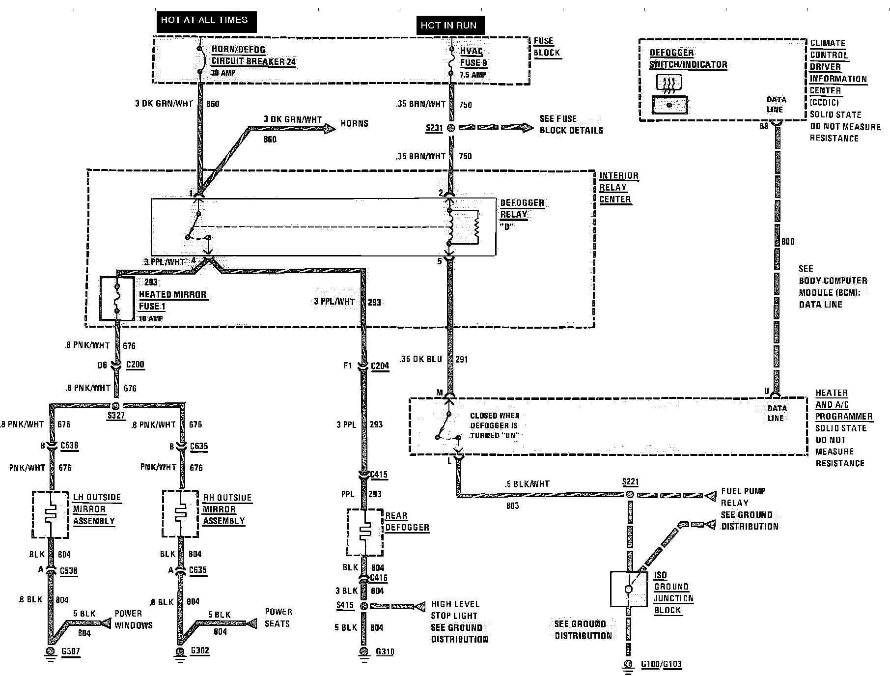 Defogger Wiring Circuit (Rear Window & Outside Mirrors):