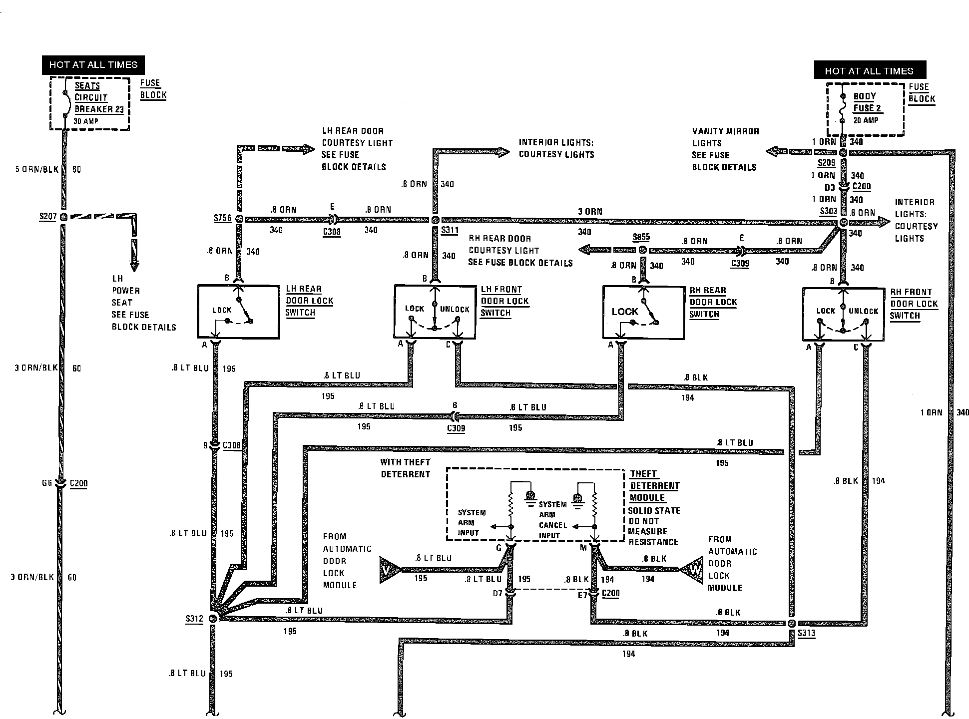 Power Door Lock Wiring Circuit (W/Automatic Door Locks) Part 1b Of 2: