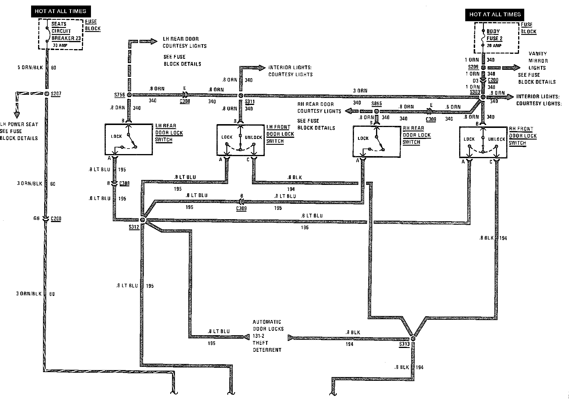 Power Door Lock Wiring Circuit (Less Automatic Door Locks) Part 2 Of 2: