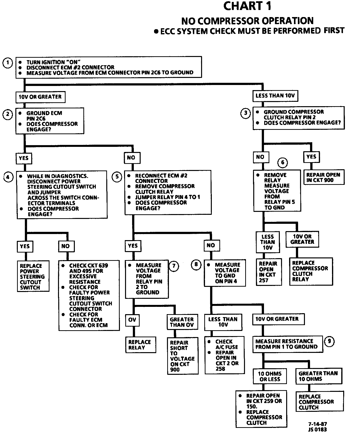 Numbers below refer to circled numbers on the diagnostic chart.