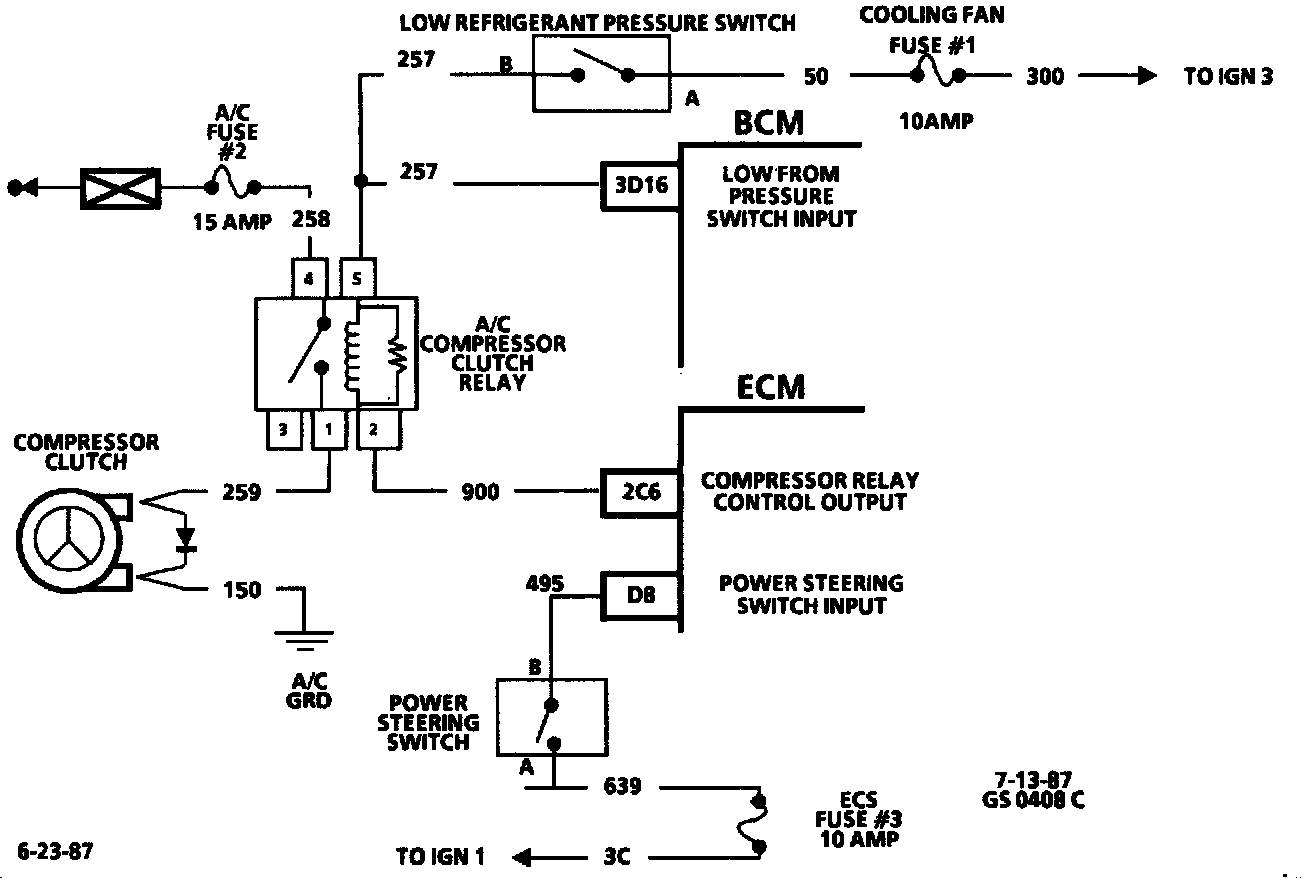 6. This step checks to see if the compressor clutch relay is receiving power on CKT 257.