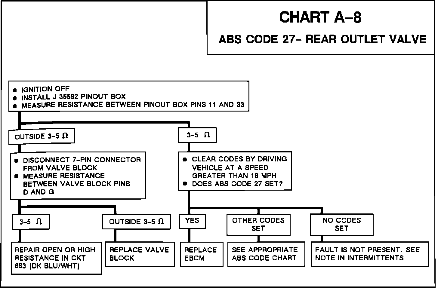 Fig. 20 Chart A-8, ABS Trouble Code 27 (Rear Outlet Valve):