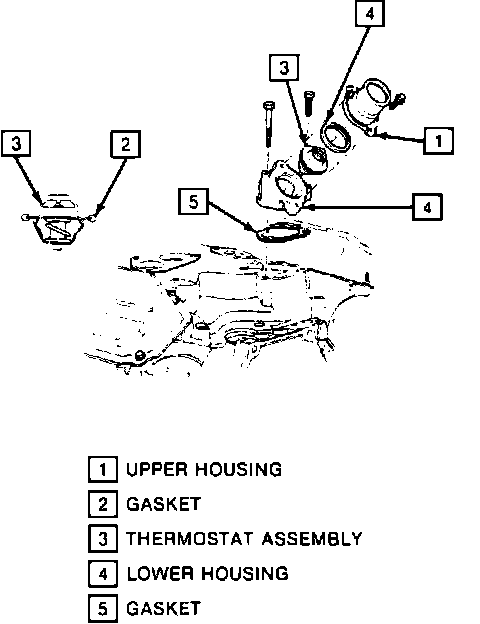 4. Remove upper thermostat housing, then thermostat and gasket from lower housing.