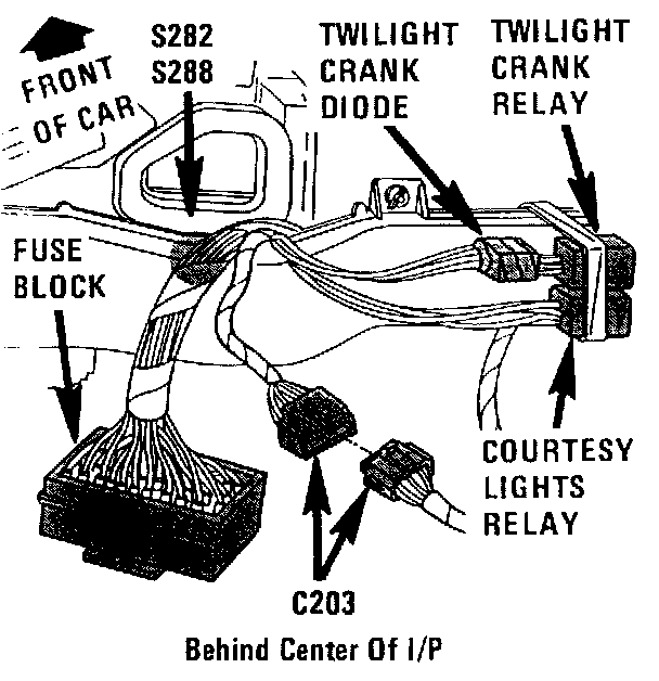 The Twilight Crank Diode is located behind RH side of Instrument Panel