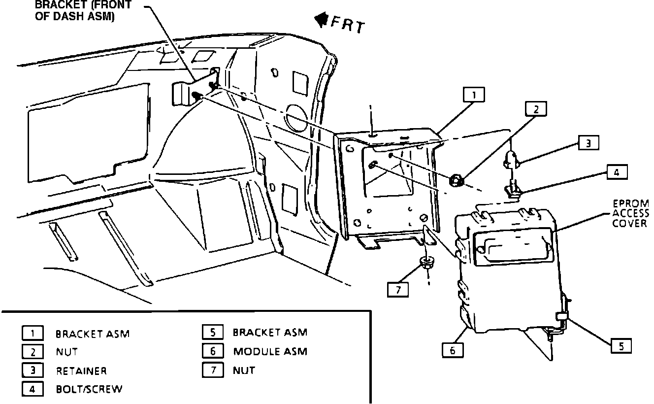 The Electronic Control Module (ECM) is the control center for the Digital Fuel Injection (DFI) system and ignition system. The ECM constantly monitors information from various data sensors and controls output devices that affect vehicle performance. To allow one type of ECM to be used for many different vehicles, a device called a Memory-Calibration (MEM-CAL) unit is used. The MEM-CAL is located inside the ECM and has system calibration information based upon the vehicle's axle ratio, engine, transmission, weight, and other specific configurations of the vehicle. Since the MEM-CAL unit is unique to specific vehicles, it is important to install the MEM-CAL unit into the new ECM when servicing. The ECM also has self-diagnostic functions which stores trouble codes and alerts the driver through a warning lamp on the instrument panel.