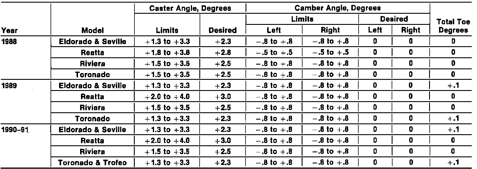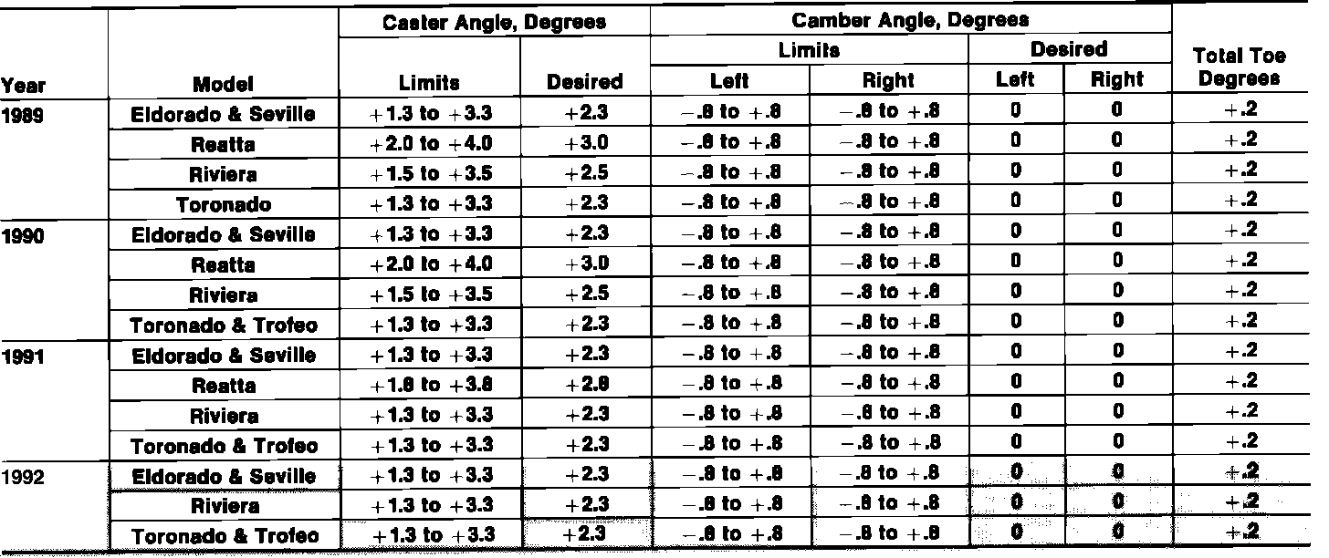 Front Wheel Alignment Specifications: