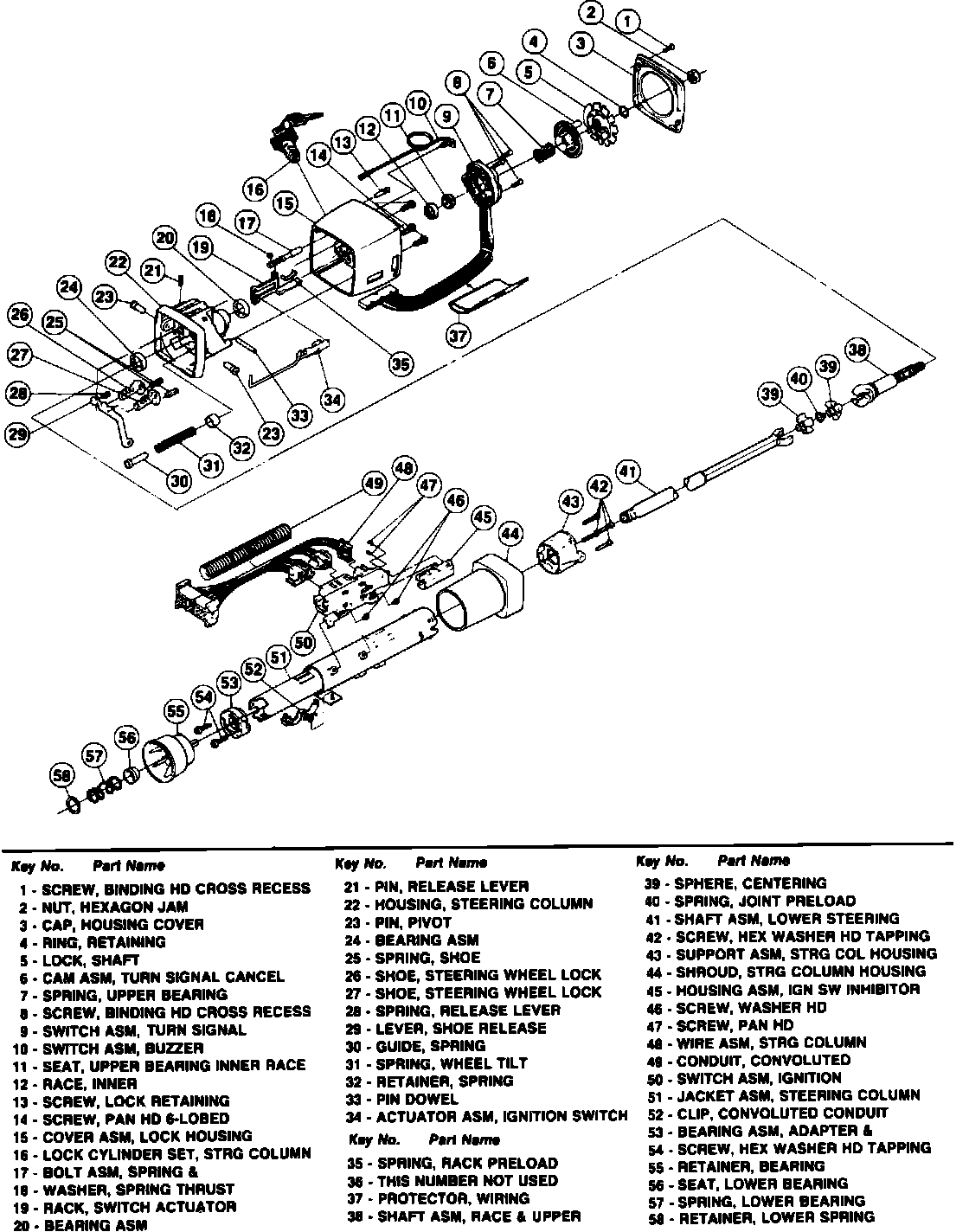 Refer to Figs. 60 and 61 for steering column component identification.