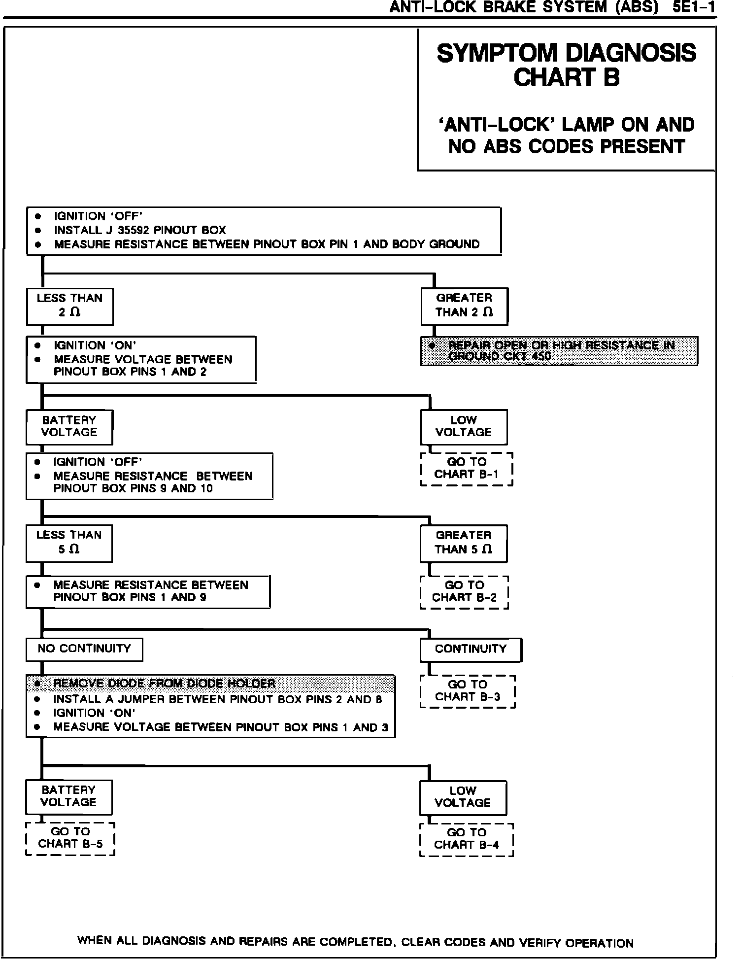 SERVICE MANUAL UPDATE (REVISED DIAGNOSTIC CHARTS) - SECTION 5E1 - ANTI-LOCK BRAKE SYSTEM