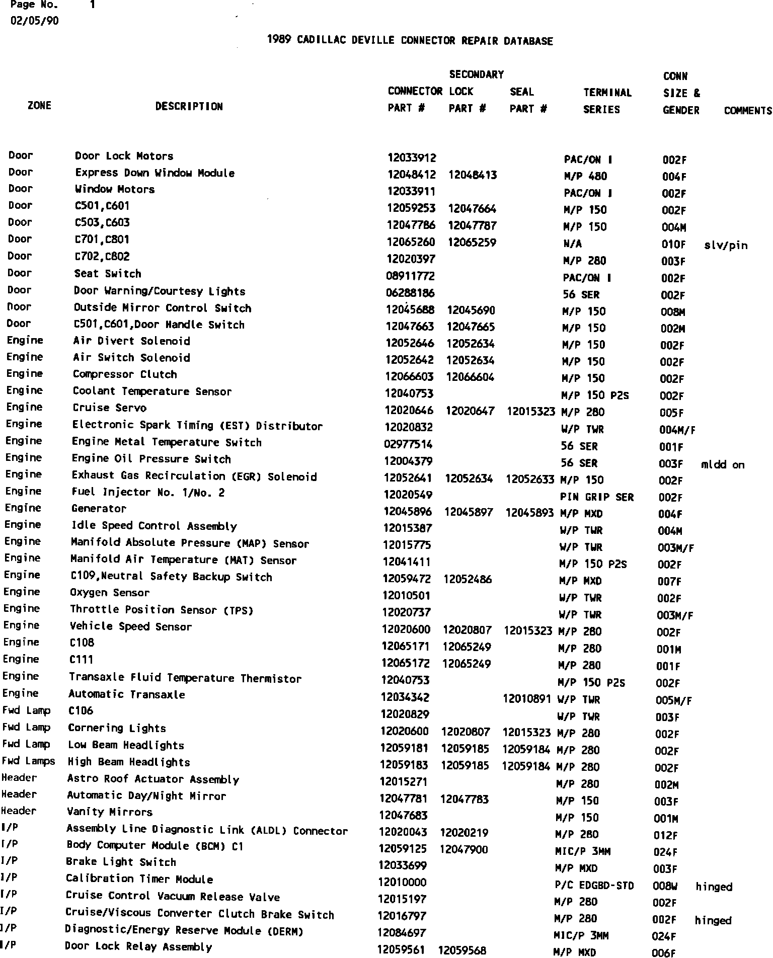 1989 Deville Connector Repair Database
