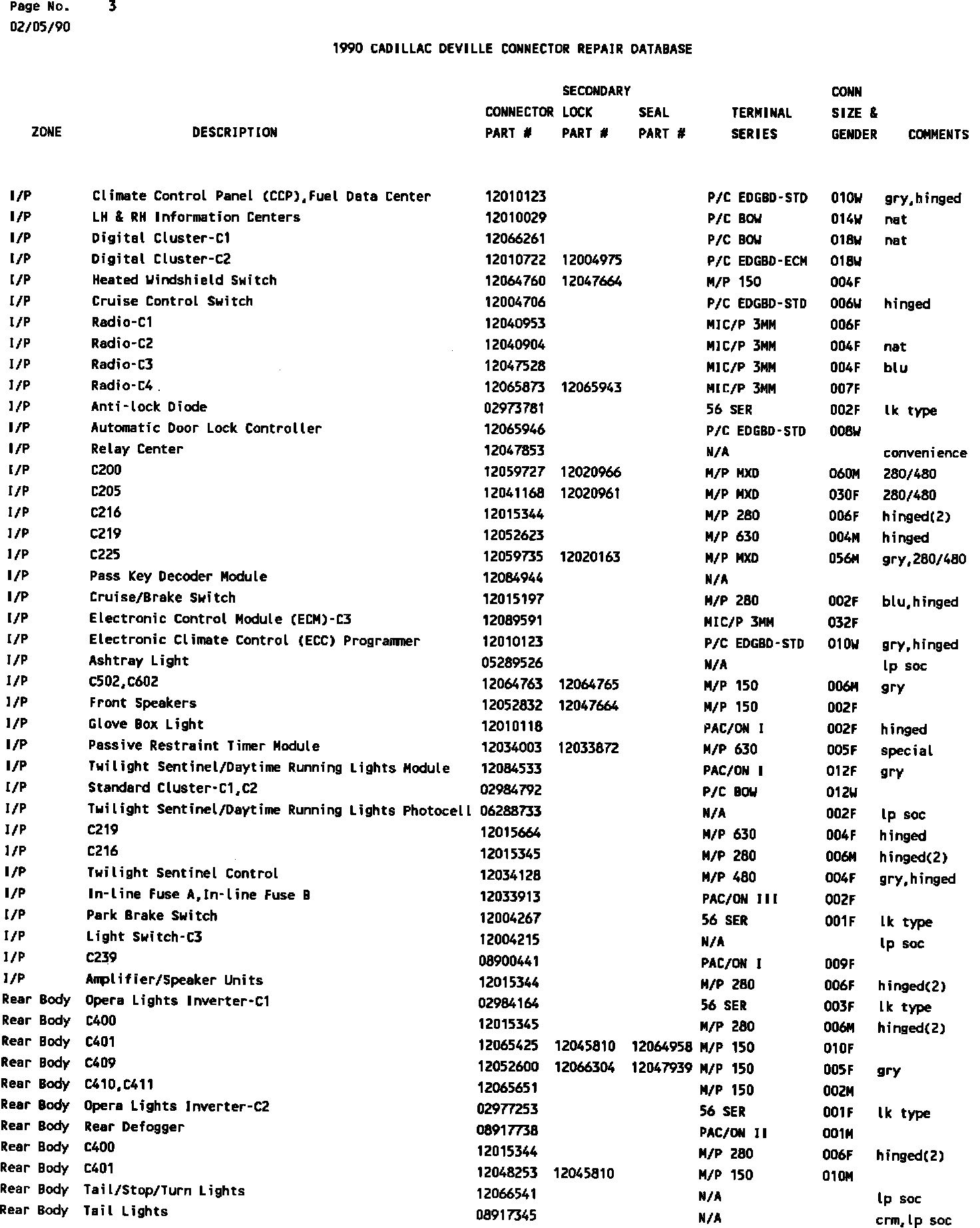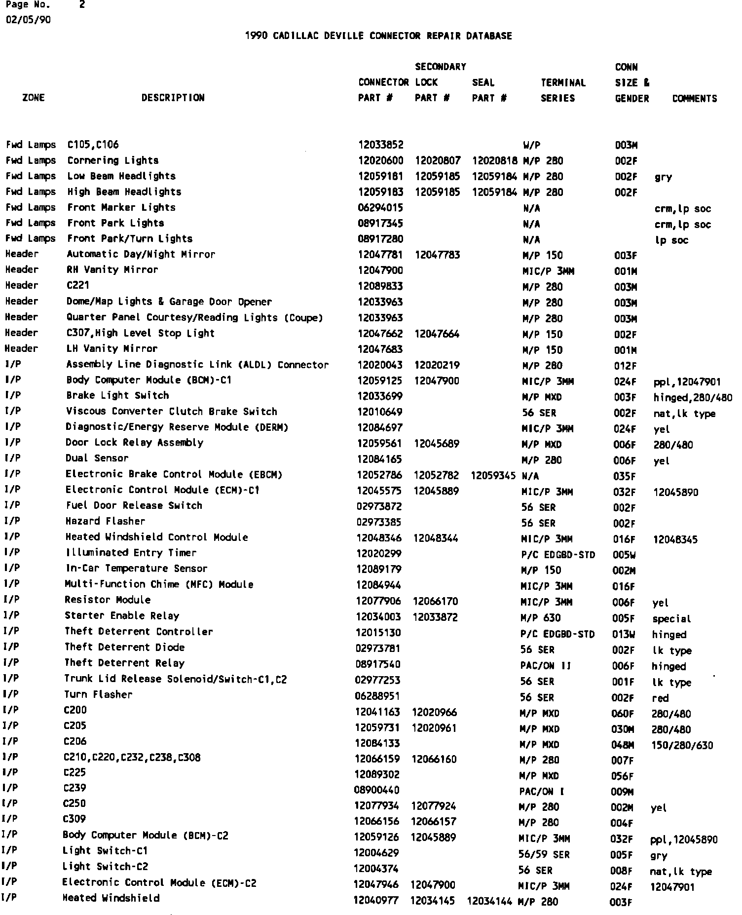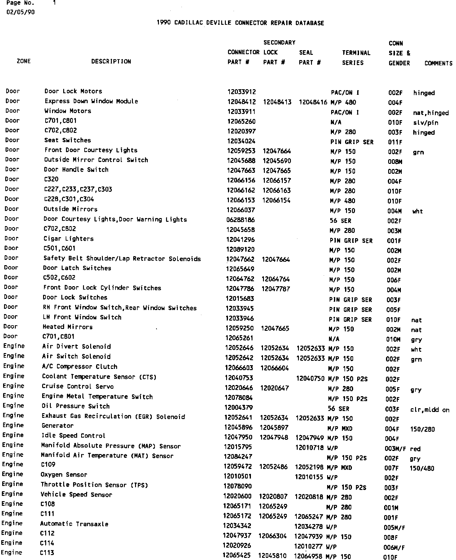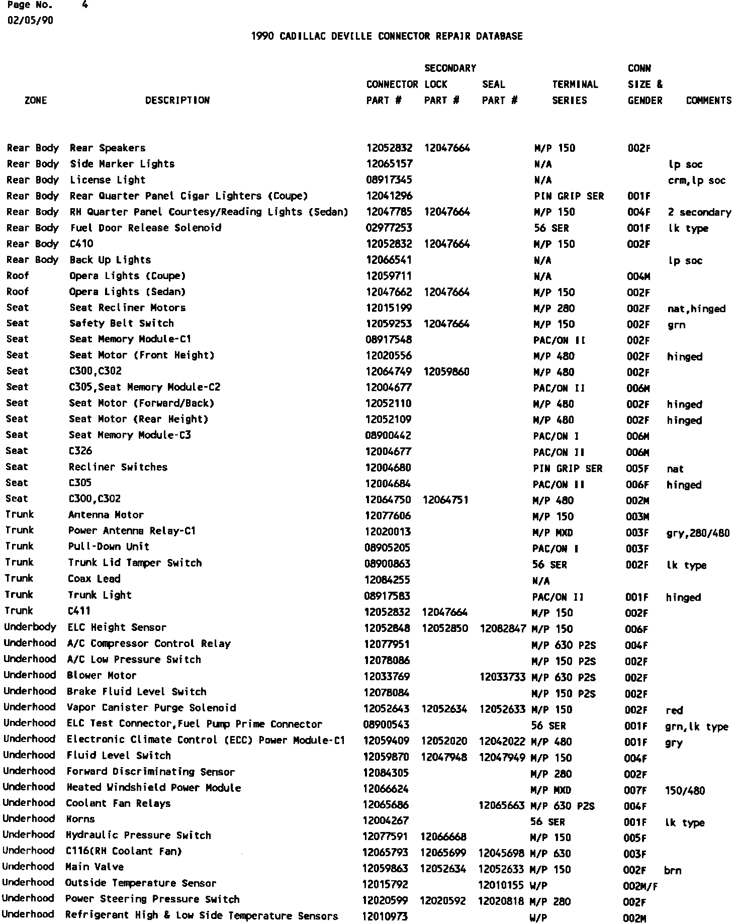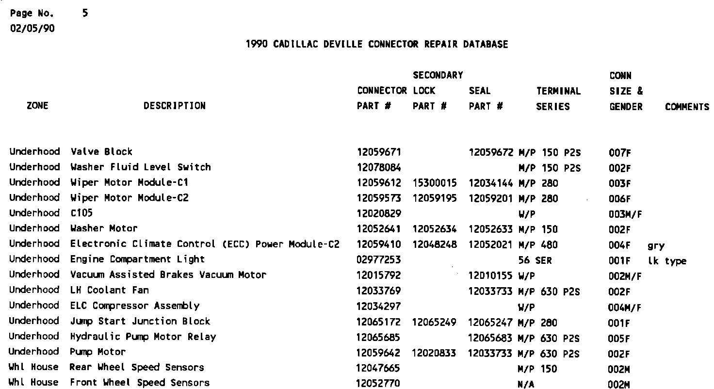 1990 Deville Connector Repair Database