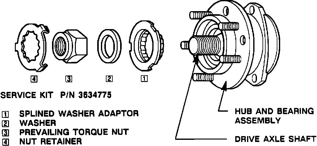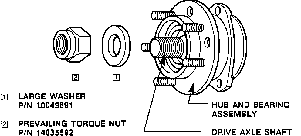 7. If torque in step 5 is below 80 N-m (60 ft. lbs.) replace hub and bearing assembly and seal per 1989 Eldorado/Seville Service Information Manual procedure, page 3C-6.