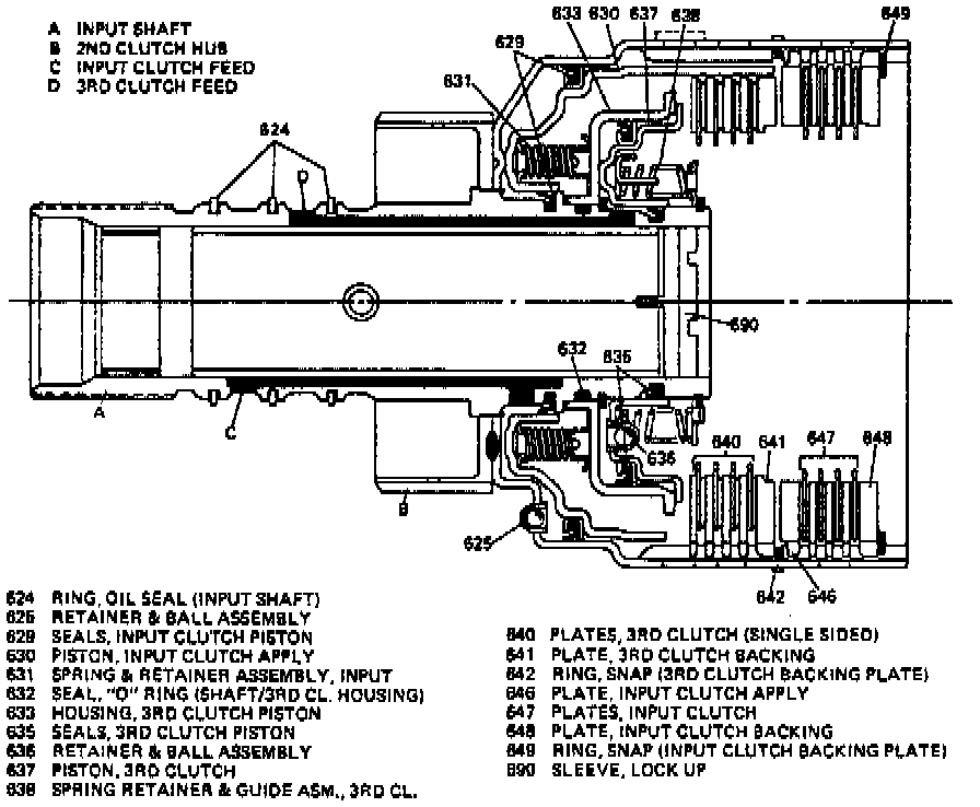 Fig. 45, Cross sectional view of input clutch. 1988-90 units: