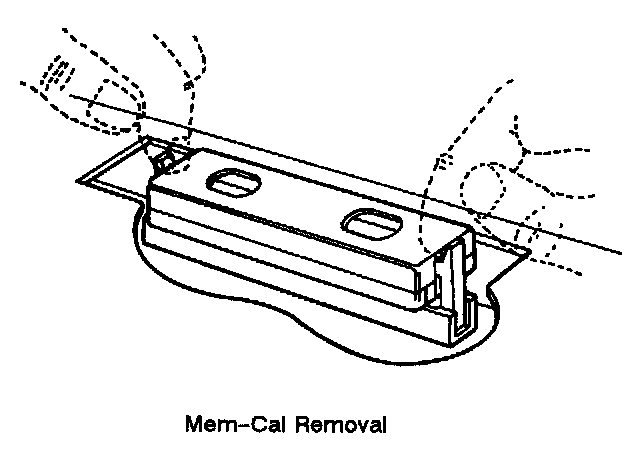 Important: Using two fingers, push both retaining clips back away from the MEM-CAL at the same time. Grasp the MEM-CAL at both ends and lift up out of the MEM-CAL socket. Do not remove the cover of the MEM-CAL. Use of unapproved MEM-CAL removal methods will cause damage to the MEM-CAL or MEM-CAL socket.