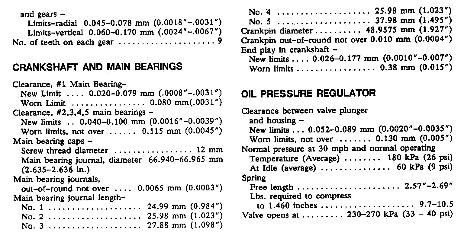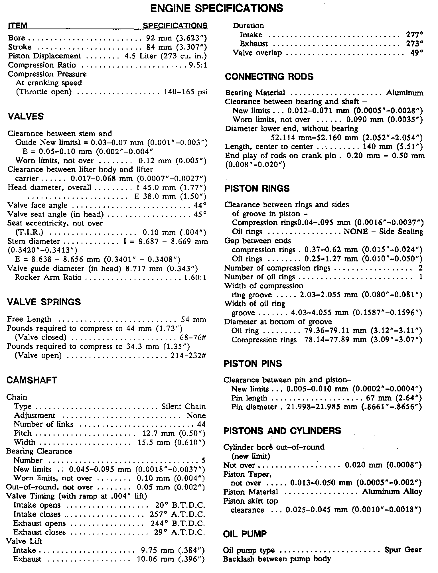 Engine Specifications: