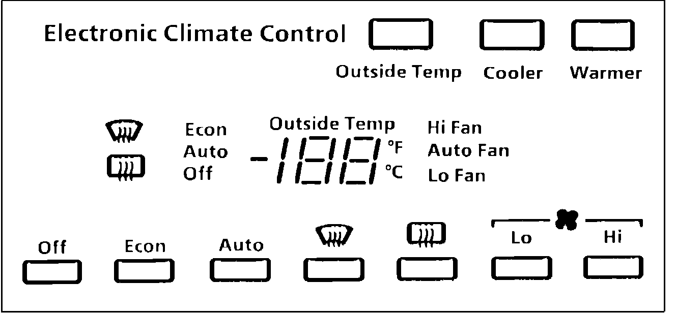 1. Enter the diagnostics by simultaneously pressing the ECC display panel OFF and WARMER buttons until all displays are lit.