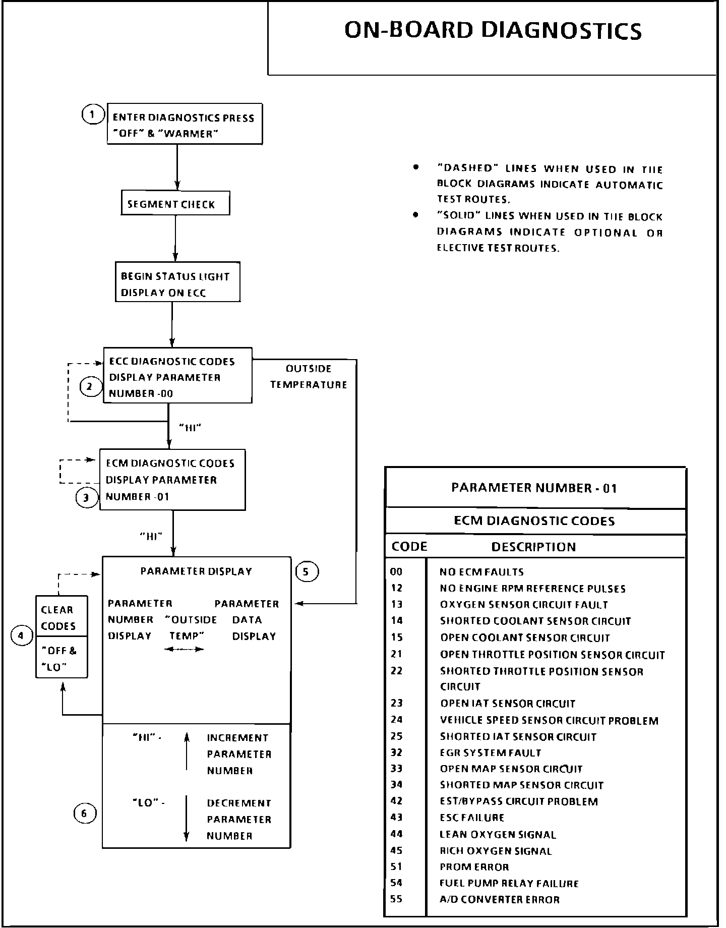 The Electronic Climate Control (ECC) head has the ability to display ECM trouble codes. Checking the operation of the "SERVICE ENGINE SOON" ("CHECK ENGINE") light or for a code 12 may be accomplished by grounding the ALDL terminal (A to B).