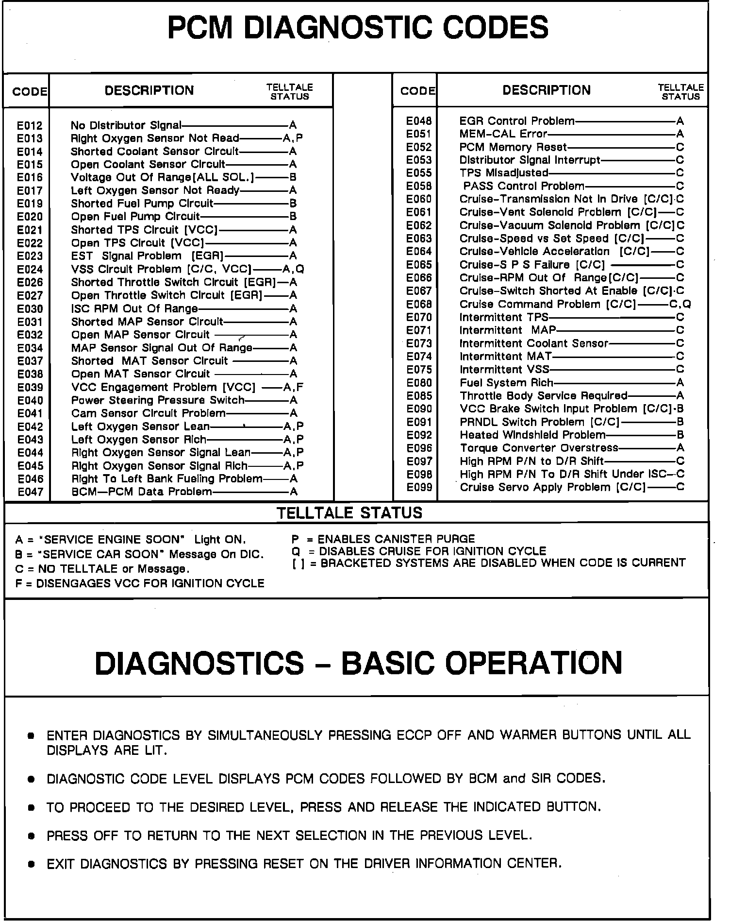 PCM Diagnostic Codes: