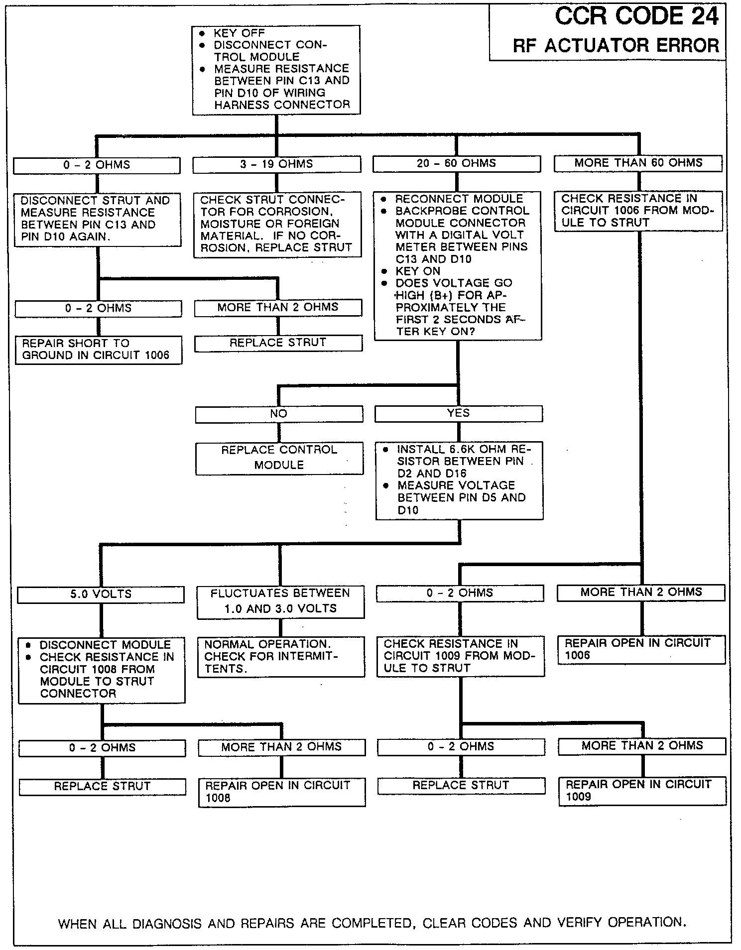 An actuator position fault occurs when the actuator position feedback signal has not achieved and remained at the commanded actuator position within 6 seconds after the actuator has been activated. Actuator position faults result in deactivating the faulted actuator, storing error codes 23, and activating the "SERVICE CCR SYSTEM" message. The system will continue to operate all nonfaulted actuators normally.