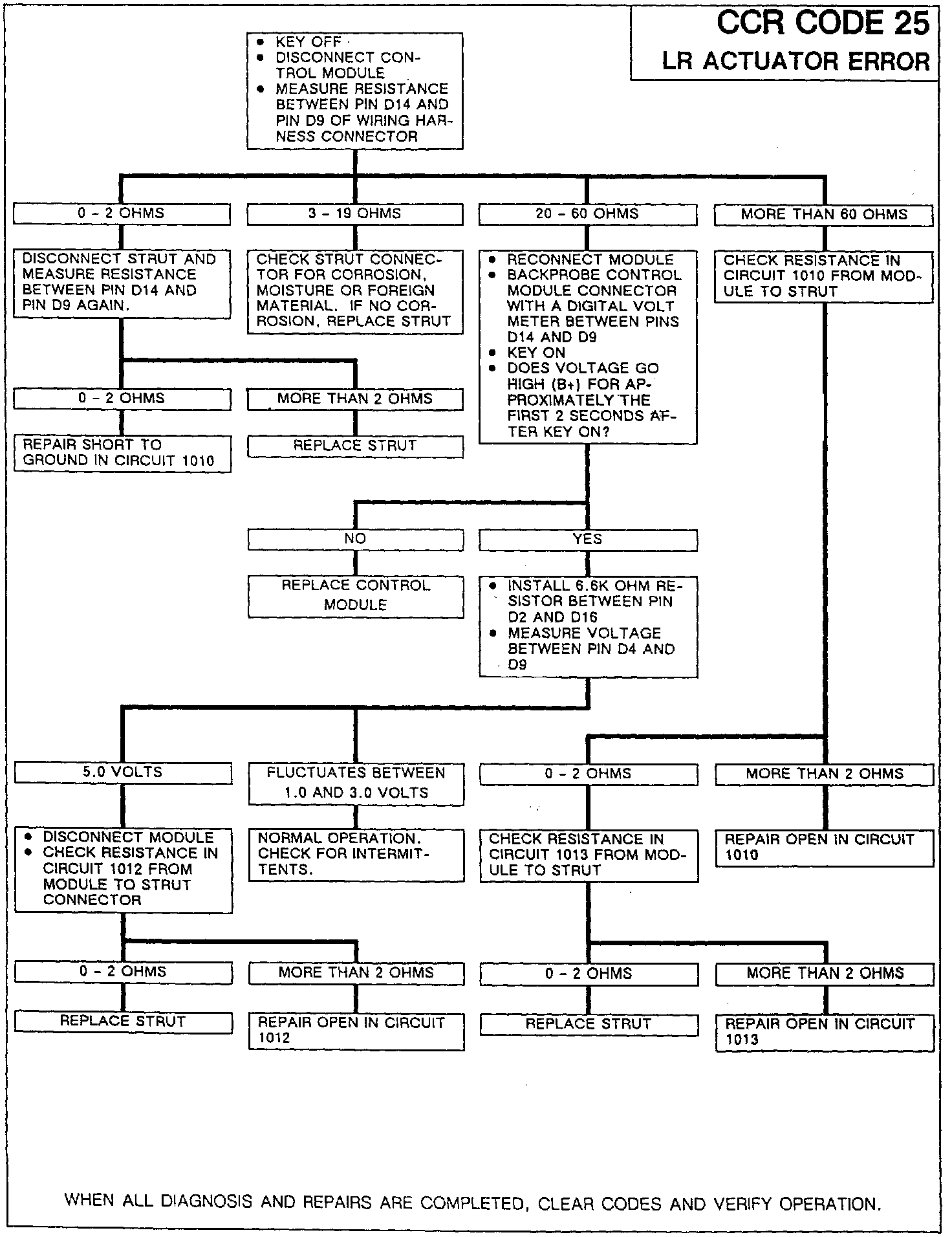 An actuator position fault occurs when the actuator position feedback signal has not achieved and remained at the commanded actuator position within 6 seconds after the actuator has been activated. Actuator position faults result in deactivating the faulted actuator, storing error codes 25. and activating the "SERVICE CCR SYSTEM" message. The system will continue to operate all nonfaulted actuators normally.