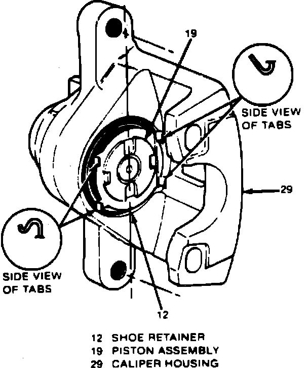 Fig. 5 Positioning Caliper Piston And Pad Retainer. Rear Disc Brake:
