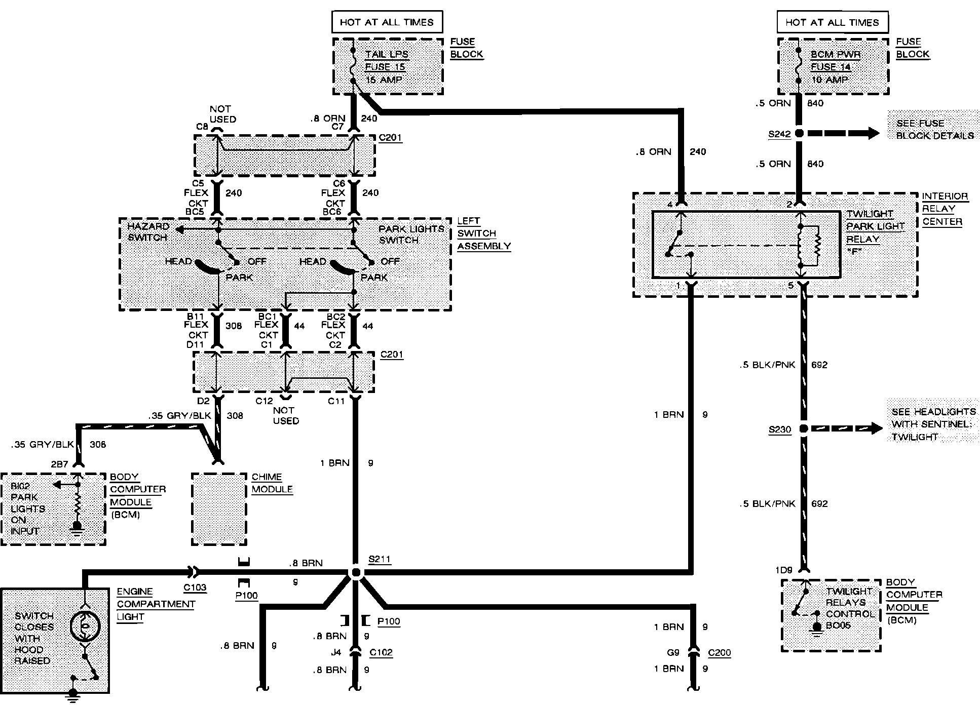 Exterior Lights. Front Marker, Front Park, Engine Compartment & Opera:
