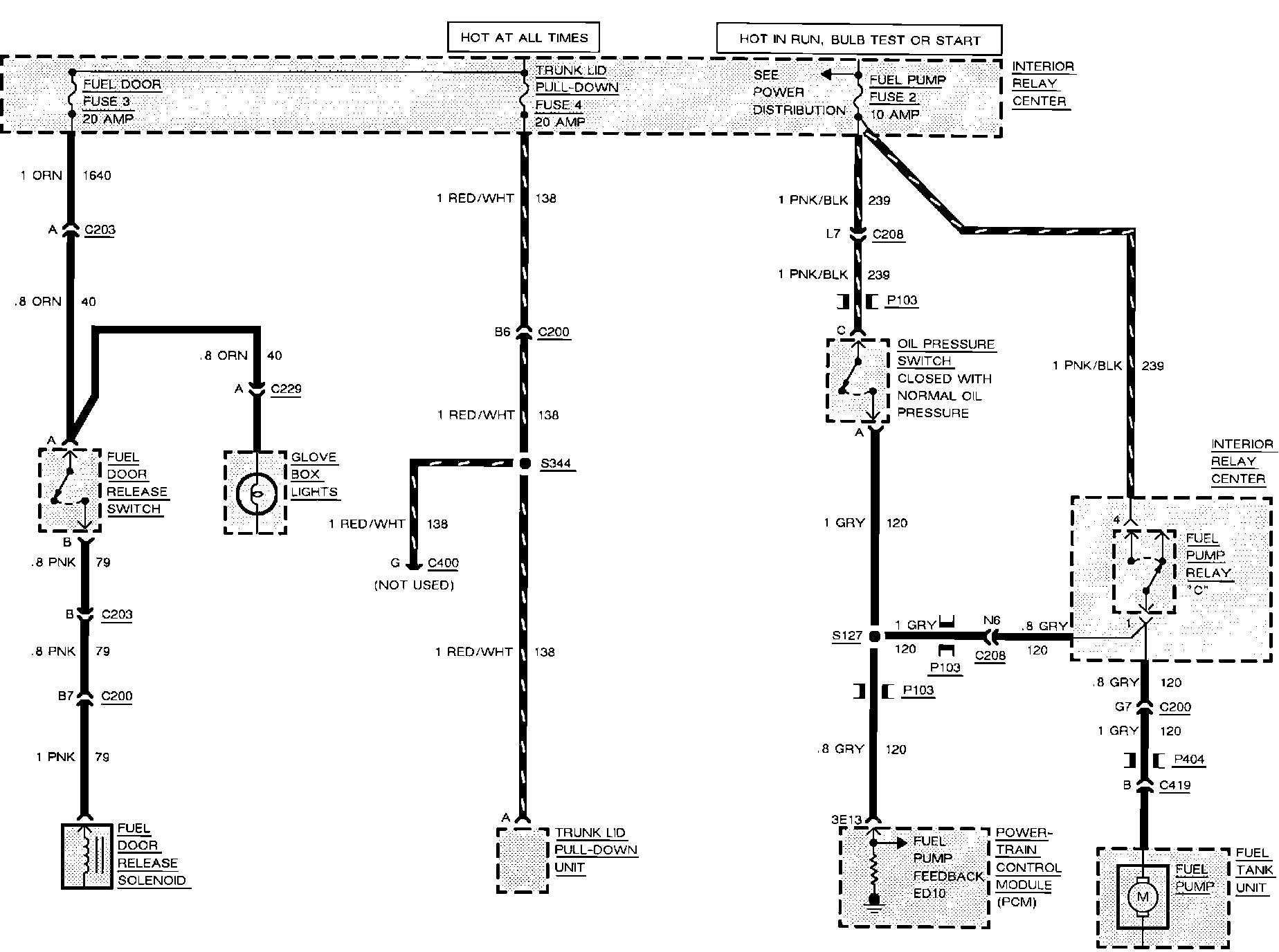 Fuse Block Details. Fuel Door Fuse 3, Trunk Lid Pull-Down Fuse 4 & Fuel Pump Fuse 2: