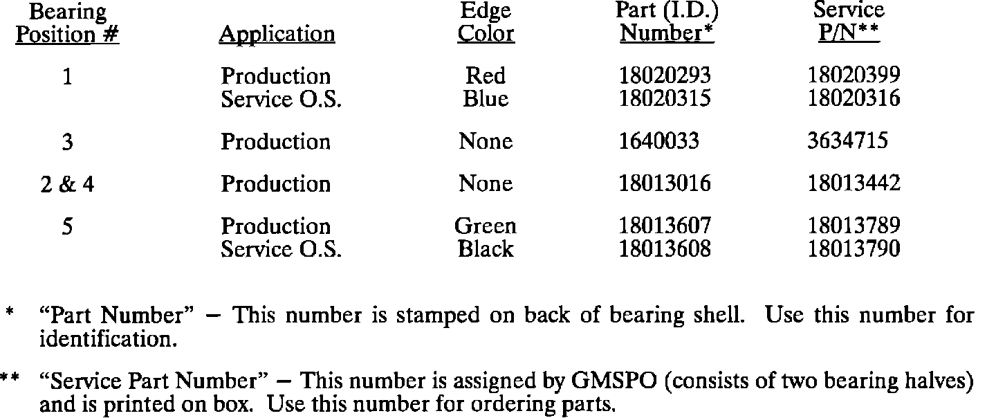 The procedure necessary to establish which bearing (standard or oversize) should be installed in the # 1 or # 5 position, is contained in 1987 and later Service Information Manuals. This procedure applies to all 4.5L and 4.9L V8 engines. Bearing position # 1 has the most influence on mallet noise.