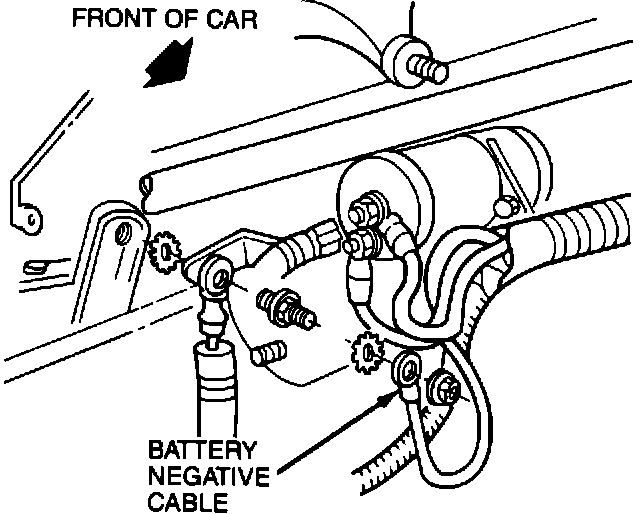 2. Remove and clean the ground stud by the starter. Install a star washer, P/N 11501869, on both sides of the stud to engine block. For location on DeVilles and Fleetwoods refer to Figure 1, for Eldorados and Sevilles refer to Figure 2.