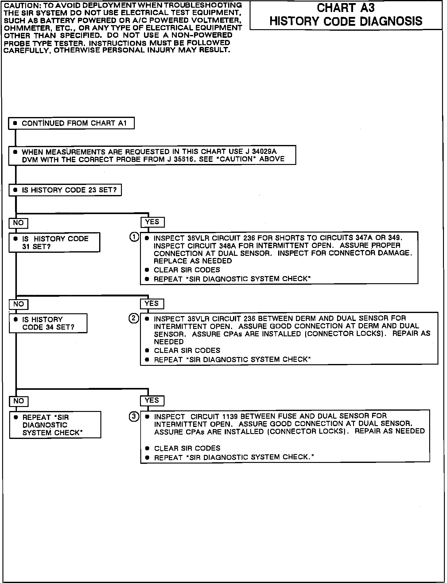 1. Checks for intermittent wiring shorts between 36VLR (CKT 236) and CKTs 347A, 347B, 348A, 348B and 349 of the SIR wiring harness. Also checks for intermittent open in CKT 348A.