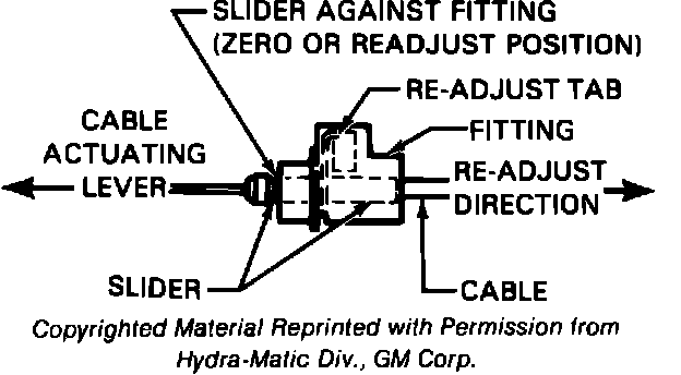 4. Check cable for sticking or binding and road test vehicle. Recheck cable after engine has reached normal operating temperature, as cable may appear to operate properly with engine cold.