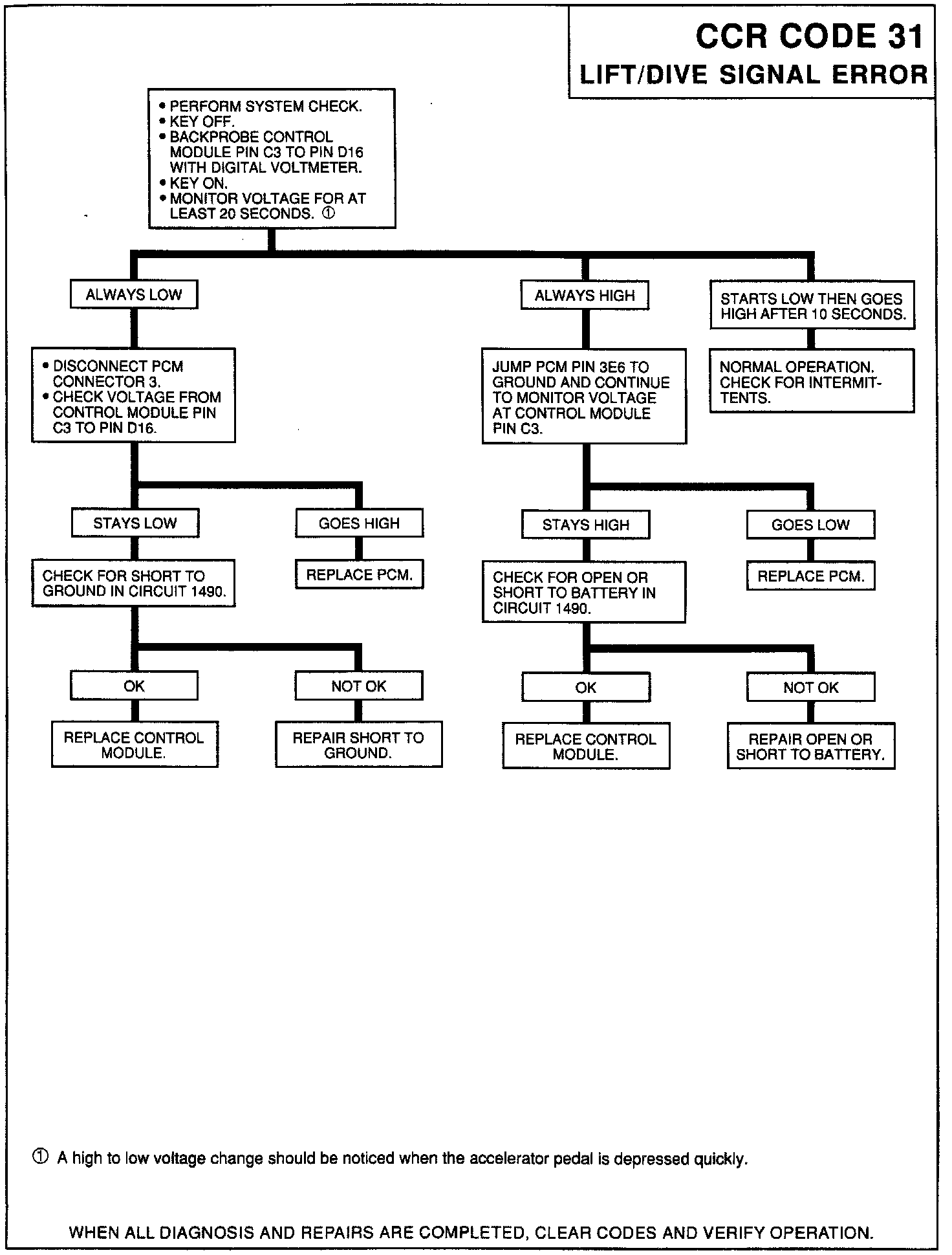 CODE 31 LIFT/DIVE INPUT ERRORTEST CONDITIONS: