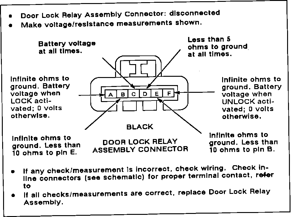 Test G: Door Lock Relay Assembly Test:
