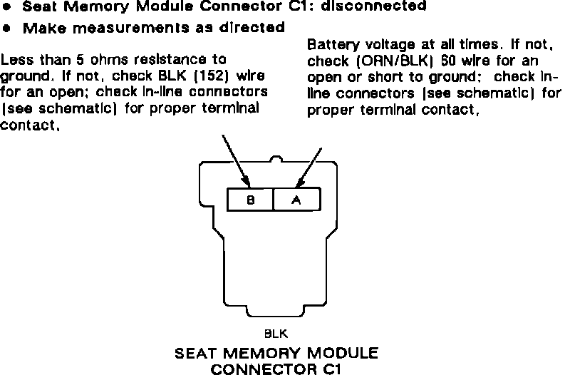 Test E1: Seat Memory Module Connector C1 Pin-out Test: