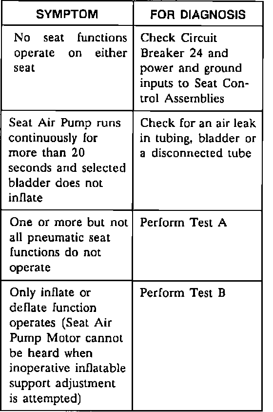 A Symptom Chart - Standard Power Seats