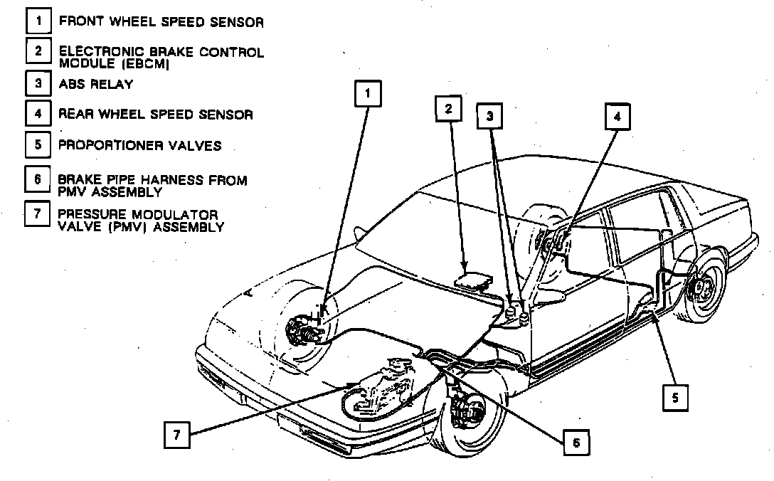 The purpose of the anti-lock brake system is to prevent wheel lock-up under heavy braking condition, on virtually any road surface. When a wheel locking condition exists, the pressure modulator valve (PMV) assembly isolates each individual wheel hydraulic circuit, then begins modulation of fluid pressure to each wheel according to wheel speed input to the EBCM. The PMV is controlled by the Electronic Brake Control Module (EBCM).