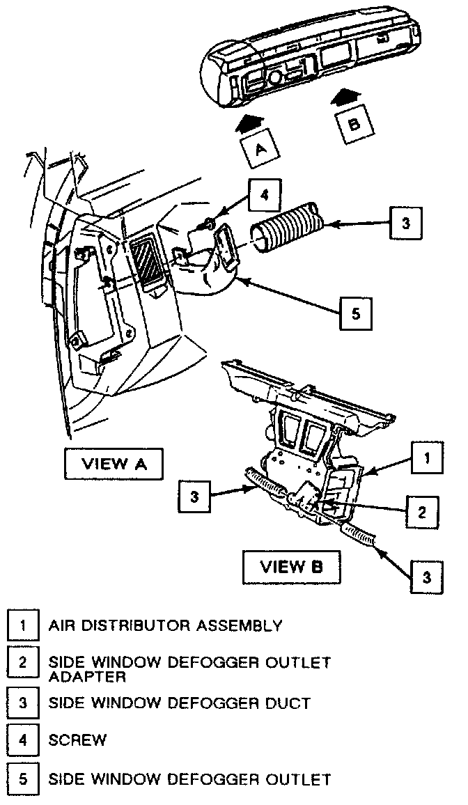 4. Side window defogger hoses/outlet from air distributor assembly.