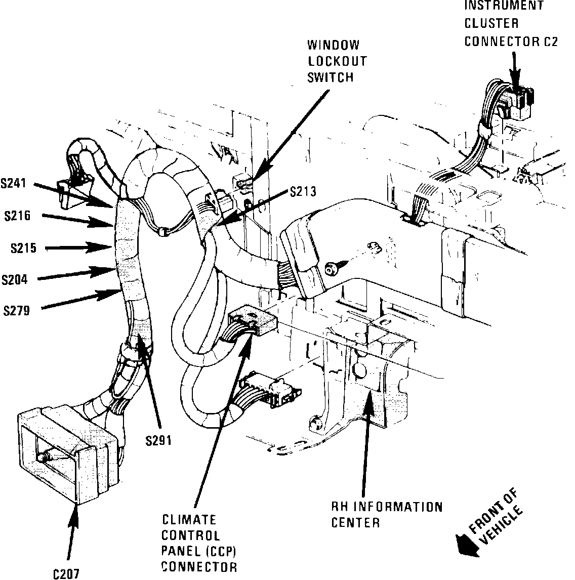 I/P harness, behind I/P, right of steering column
