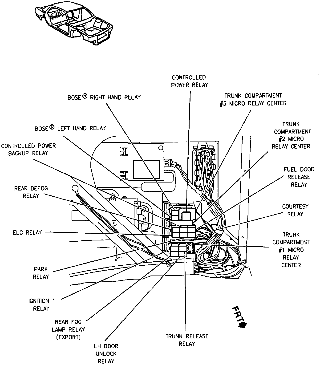 The Electronic Level Control (ELC) Relay is located in Relay Center. The Relay Center is located behind RH side of I/P, at top of shroud.