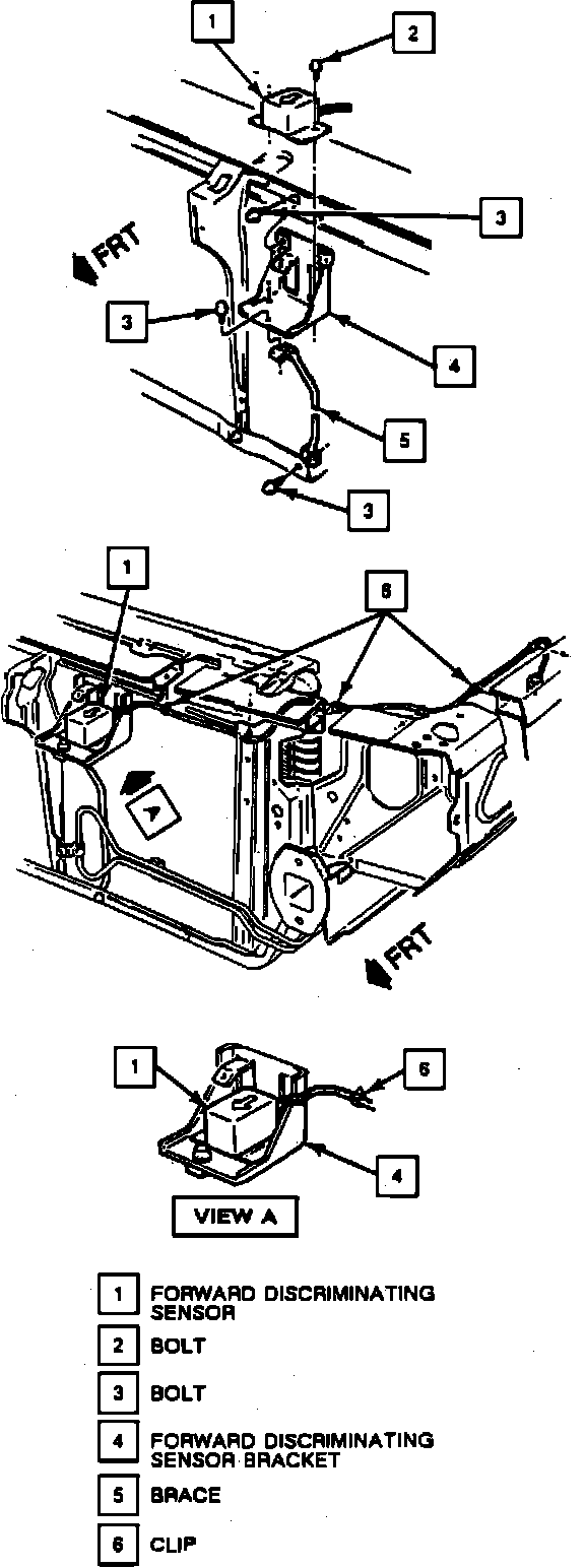 2. Disconnect forward sensor electrical connector, then remove harness retaining clips, Fig. 315.