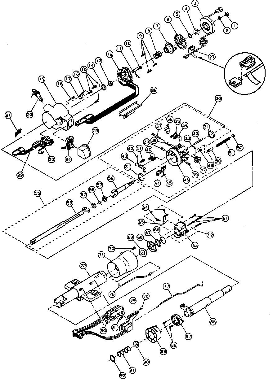 SHAFT ASSEMBLY, COLUMN HOUSING SUPPORT, SHIFT TUBE ASSEMBLY, IGNITION SWITCH, DIMMER SWITCH & LOWER BEARING ASSEMBLY