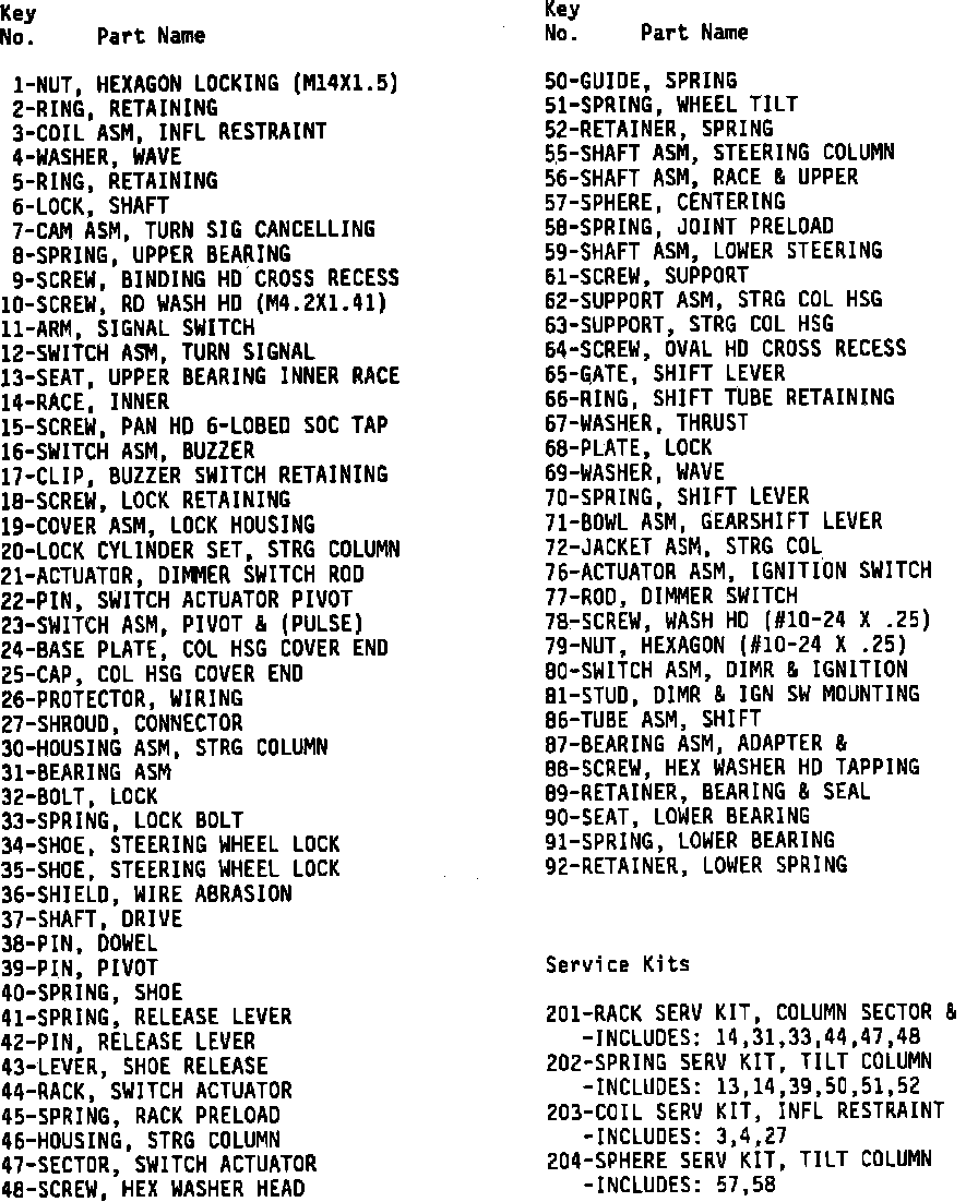 COIL ASSEMBLY, SHAFT LOCK, TURN SIGNAL CANCELLING CAM, UPPER BEARING SPRING, UPPER BEARING SEAT, INNER RACE TURN SIGNAL SWITCH, BUZZER SWITCH & LOCK CYLINDER SET