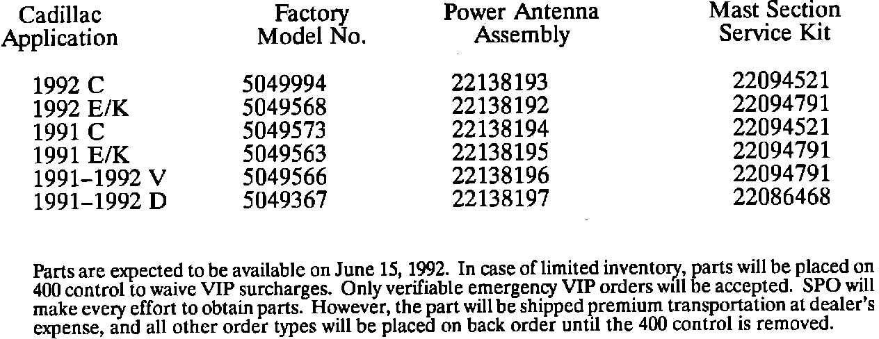 Some 1991-1992 model DeVilles, Fleetwoods, Eldorados, Sevilles, Broughams, and Allantes may experience a condition where the power antenna may create unacceptable noise when extending or retracting. This condition may be worse in colder weather.